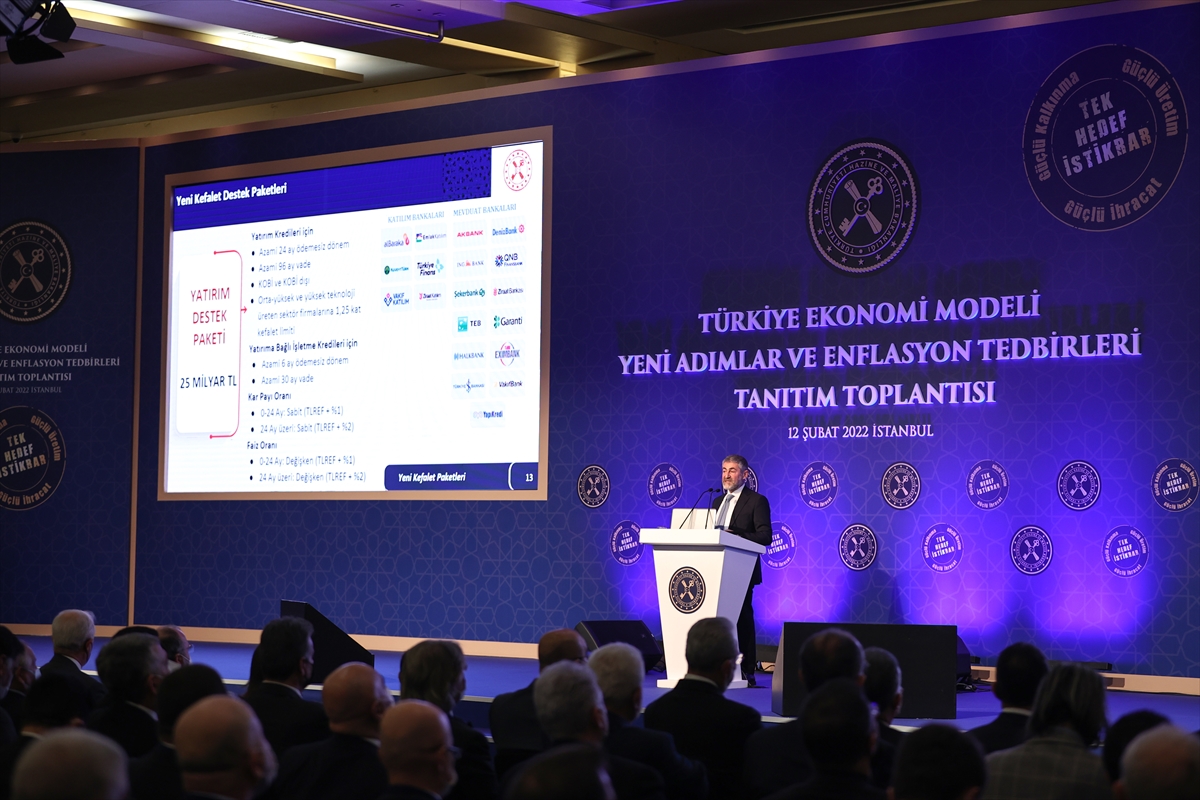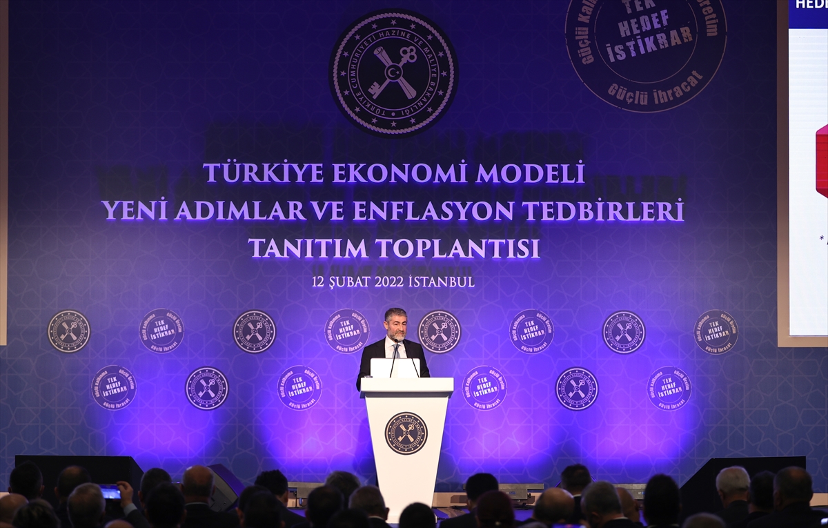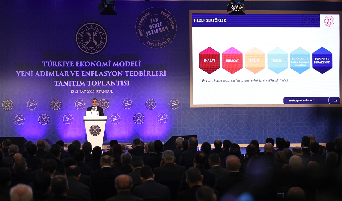 Nebati, İstanbul Kongre Merkezi’nde düzenlenen Türkiye Ekonomi Modeli Yeni Adımlar ve Enflasyon Tedbirleri Tanıtım Toplantısı’nda yaptığı konuşmada, yatırım, istihdam, üretim ve ihracat olmak üzere 4 sacayağı üzerine inşa ettikleri Türkiye Ekonomi Modeli’nden bahsetti.