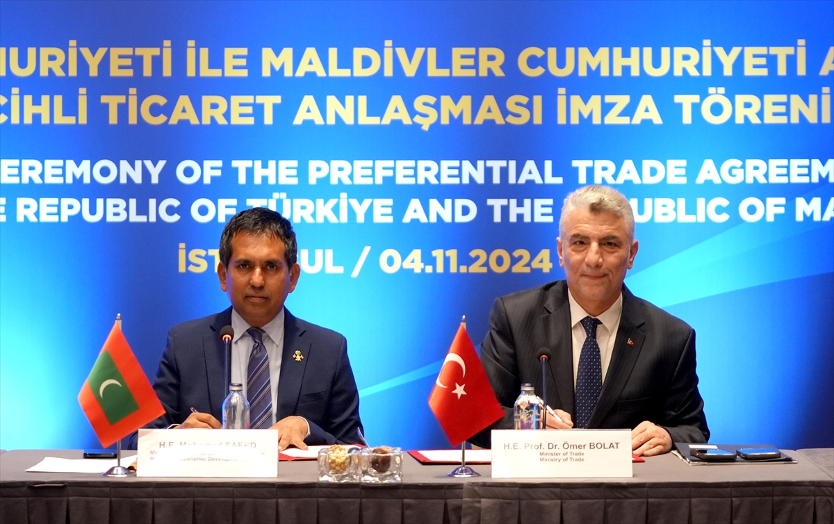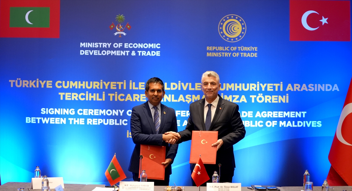 Türkiye ile Maldivler arasında Tercihli Ticaret Anlaşması, Ticaret Bakanı Bolat ve Maldivler Ekonomik Kalkınma ve Ticaret Bakanı Muhammed Saeed tarafından İstanbul'da imzalandı.