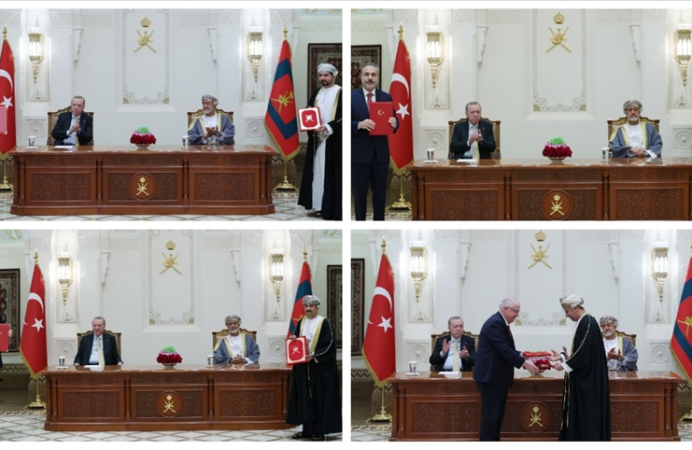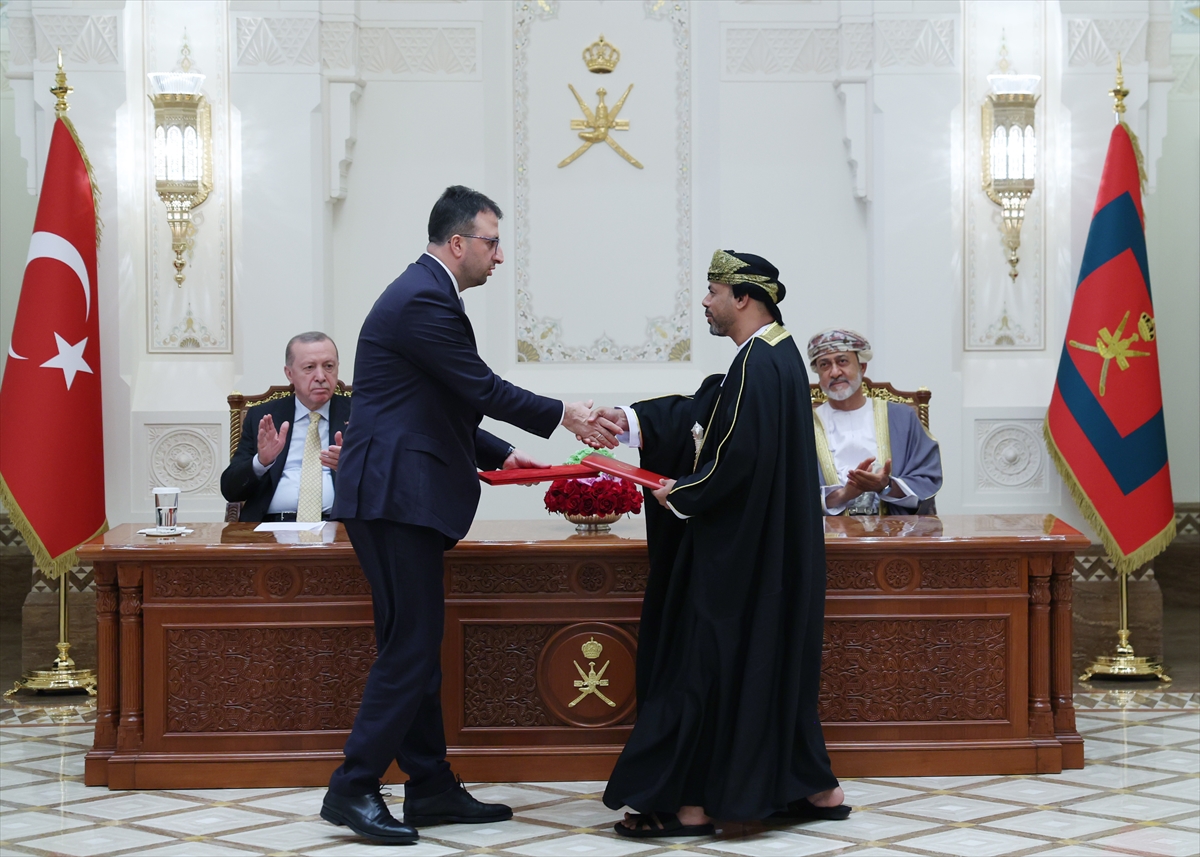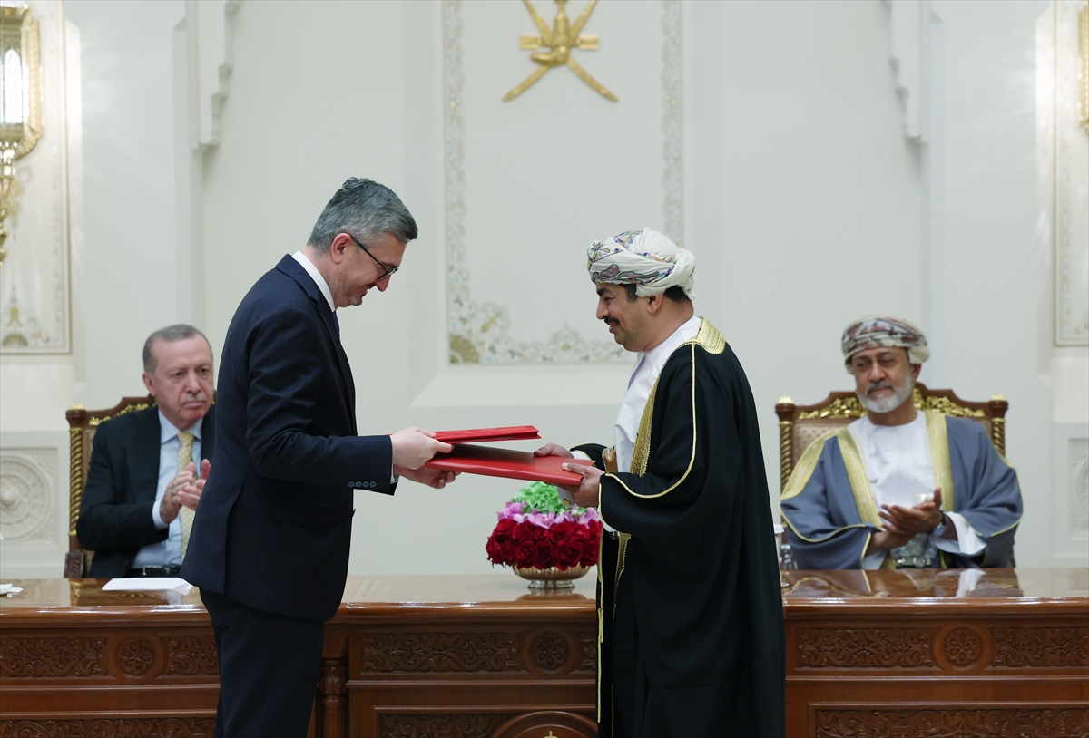 MASKAT (AA) – Türkiye ile Umman arasında, koordinasyon konseyi kurulması, askeri işbirliği, savunma sanayisi, maden ve enerji, vize muafiyeti başta olmak üzere pek çok alanda anlaşmalar imzalandı.
