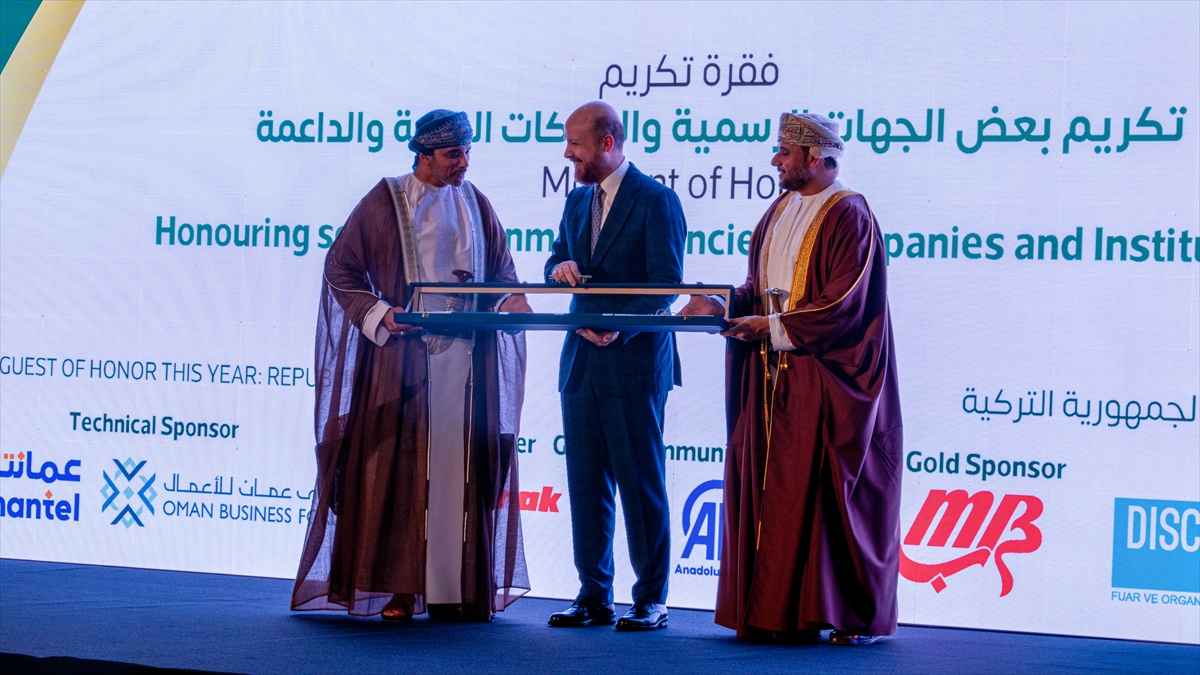 Öte yandan, törende Büyükelçi Faisal bin Turki bin Mahmoud AL Said, İlim Yayma Vakfı Mütevelli Heyeti Başkanı Bilal Erdoğan'a kılıç hediye etti ve Ticaret Bakan Yardımcısı Uçarmak'a da teşekkür plaketi verdi. OMNEX 2026 Umman-Türkiye İş Forumu ve Uluslararası Ticaret Fuarı'nın global iletişim ortağı olan Anadolu Ajansı adına teşekkür plaketini ise Faisal bin Turki bin Mahmoud AL Said'in elinden Ekonomi Haberleri Muhabiri Serhat Tutak aldı.