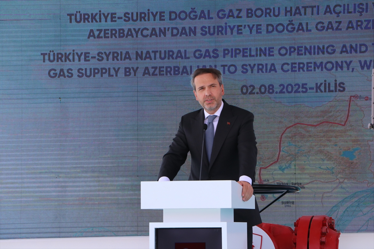 KİLİS (AA) – Enerji ve Tabii Kaynaklar Bakanı Alparslan Bayraktar, Türkiye'den Suriye'ye doğal gaz akışının başlamasına ilişkin, "Türkiye-Suriye dostluğunun enerji alanındaki nişanesi olan Türkiye-Suriye Doğal Gaz Boru Hattı'nın açılışını gerçekleştiriyoruz." dedi.