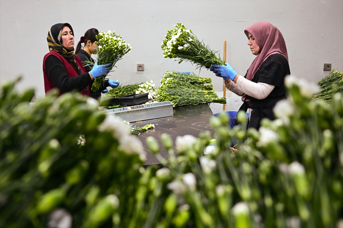 Çiçek sektöründe, aralık ayının başından itibaren yılbaşı hareketliliği yaşanıyor. Seralardan toplanan çiçekler, paketleme tesislerinde ambalajlanarak yurt içine ve dışına gönderiliyor.