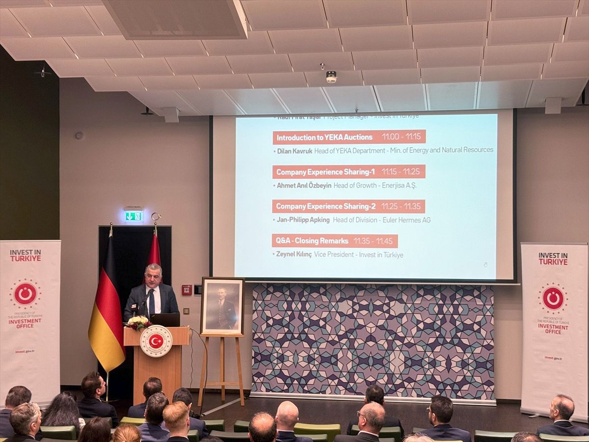 Cumhurbaşkanlığı Yatırım Ofisi, Türkiye'nin Berlin Büyükelçiliği'nde "Avrupalı ortaklar için yenilenebilir büyüme" temasıyla Türkiye'nin hızla büyüyen yenilenebilir enerji pazarına yönelik konferans düzenledi.