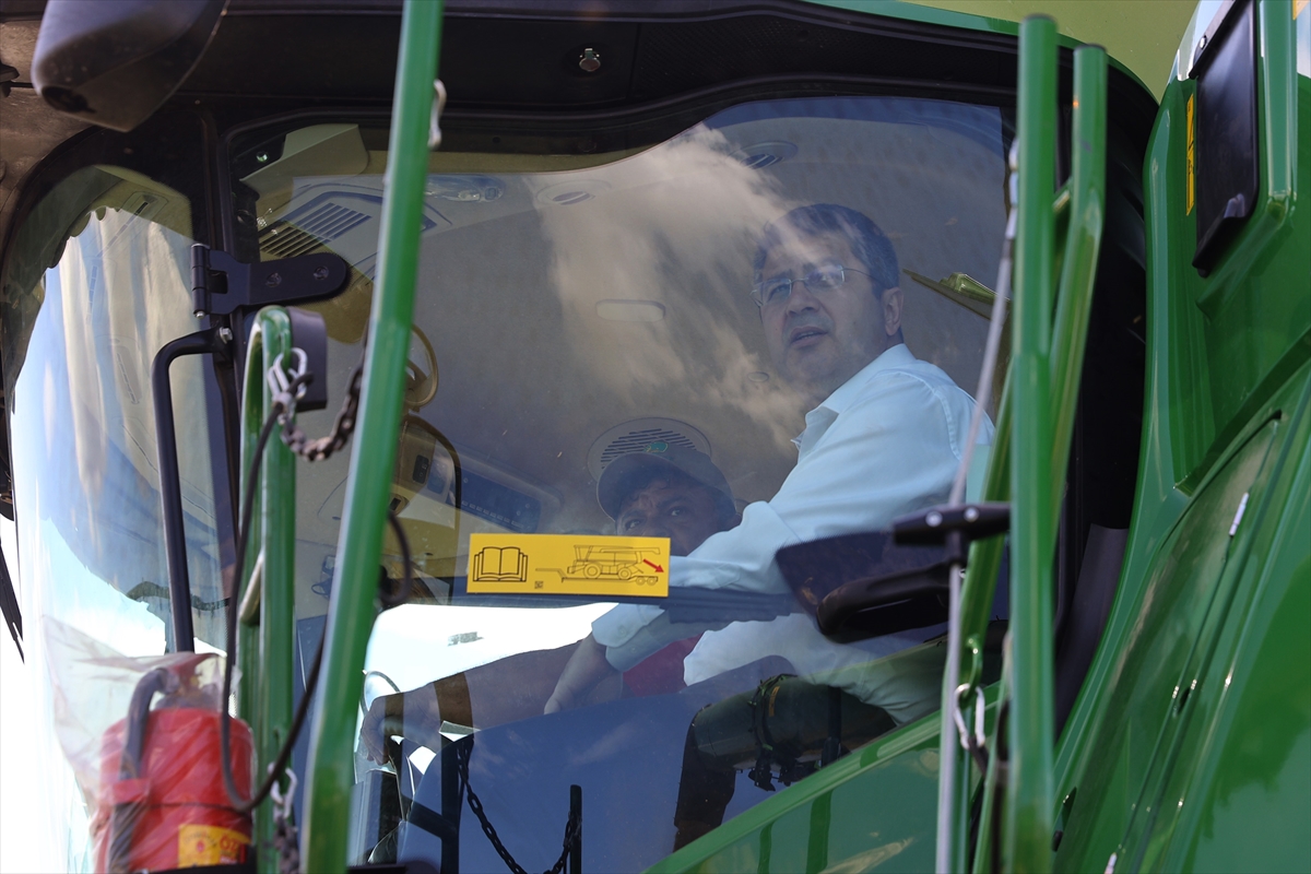 Vali Kırbıyık ve Güldal, biçerdöverlere binerek hasada katıldı. Kırbıyık bir süre biçerdöveri kullandı.