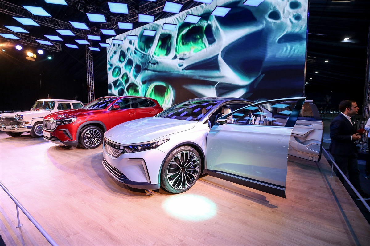 Burada oluşturulan fuaye alanında Togg'un C-SUV ve sedan modeli ile sergilenen Devrim otomobili davetlilerden yoğun ilgi gördü.