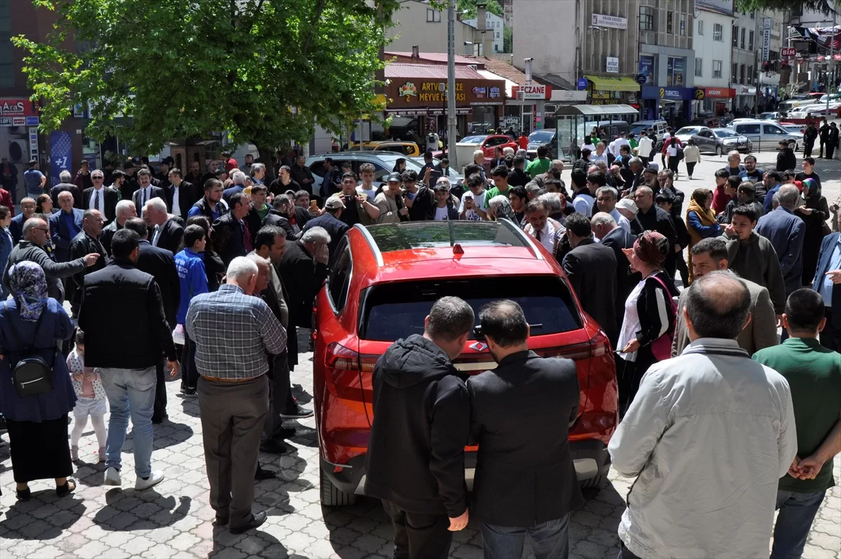 Artvin Valiliği önüne getirilen "Anadolu kırmızısı" rengindeki otomobile ilgi gösteren vatandaşlar hatıra fotoğrafı çektirdi.