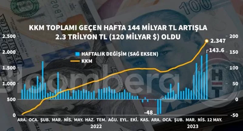 Seçim sonrasında kur korumalı mevduatın yaratmış olduğu baskı yanında, depremin ağır yükünün, EYT emekli aylıklarının, memur, işçi maaşlarının, emekli aylık zamlarının ve seçim vaatlerinin hazine üzerinde yaratacağı ek yük, bütçe açığında artışa neden olacağı gibi TL ihtiyacı, hazinenin borçlanma ihtiyacını ve emisyonu artıracak gibi görünüyor. Faizi düşük tutma politikasının sonucu olan 54 milyar dolar cari açıkla birlikte Merkez Bankası’nın brüt rezervlerinin 12 Mayıs haftasında 9 milyar dolar düşüşle 105,1 milyar dolara geriledi. Brüt rezervler, pandemiden bu yana en sert düşüşü gördü