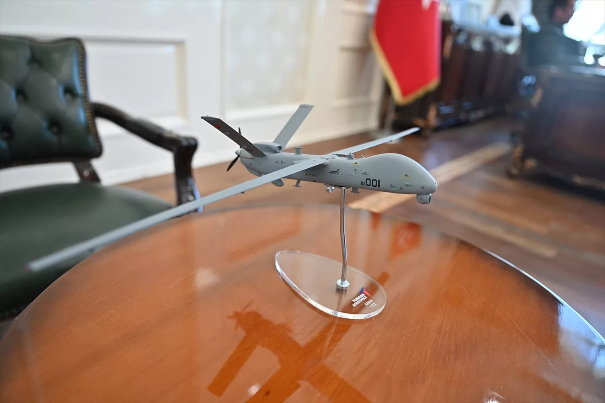 Bozdoğan makamında görüştüğü Okumuş'a tesise katkılarından dolayı ANKA insansız hava aracının maketini hediye etti.