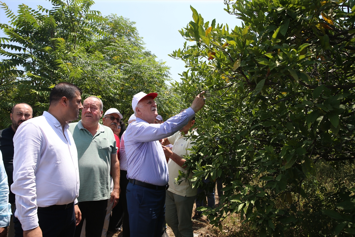 Bayraktar, ilçeye bağlı Başlamış Mahallesi'ndeki narenciye bahçelerini gezdi, oda başkanlarından ve üreticilerden bilgi aldı.