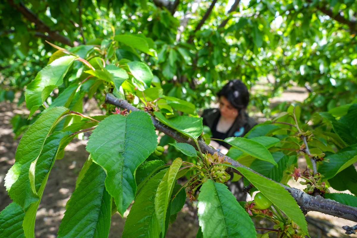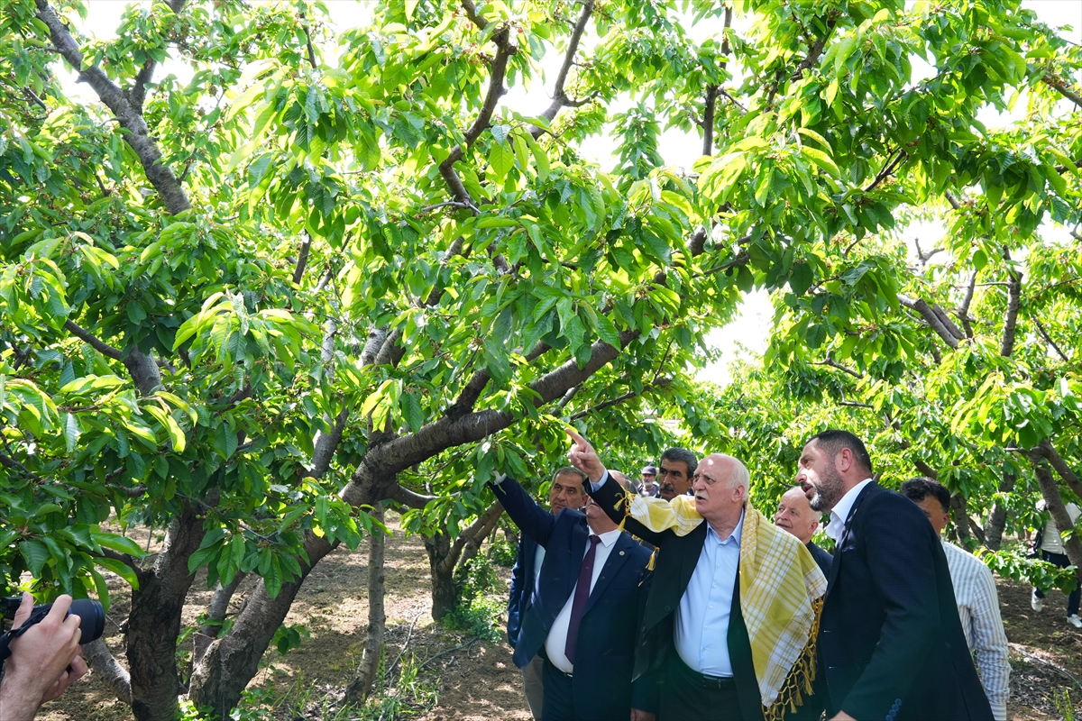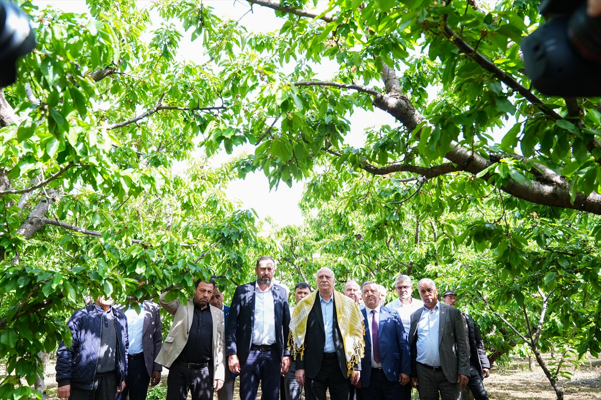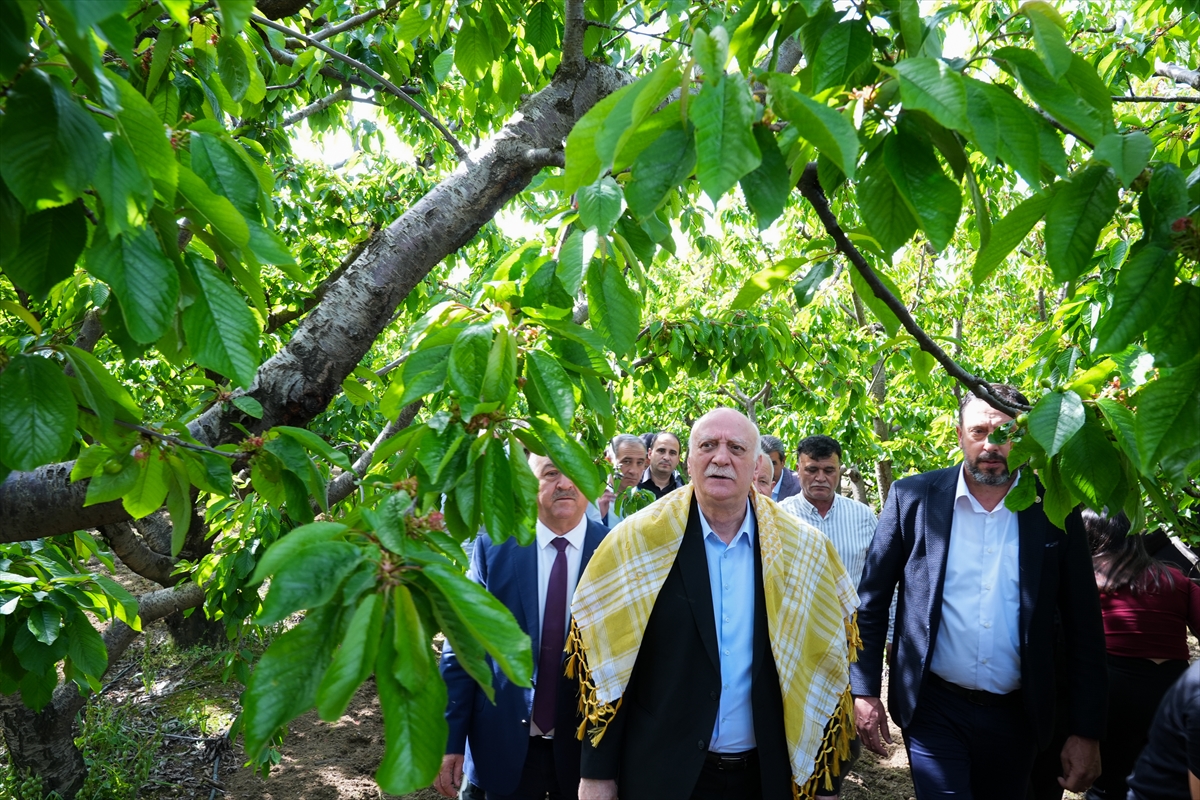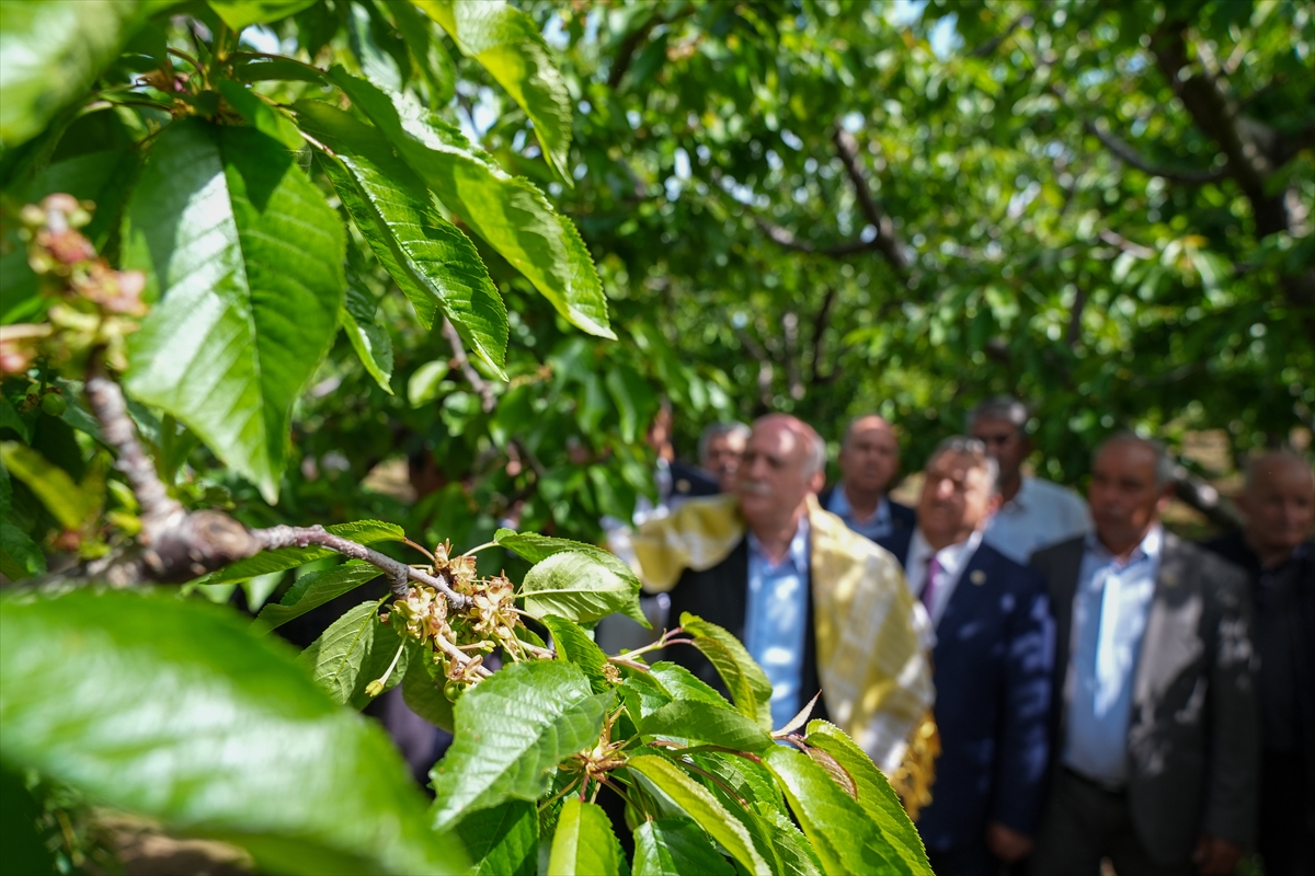 Bayraktar, Kemalpaşa ilçesindeki 75. Yıl Cumhuriyet Mahallesi'nde kiraz bahçesini gezdi, üreticilerden bilgi aldı.