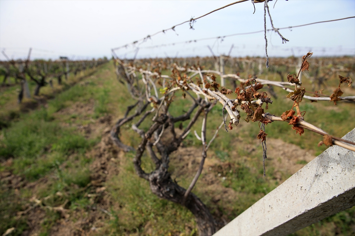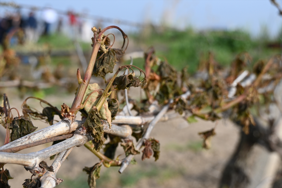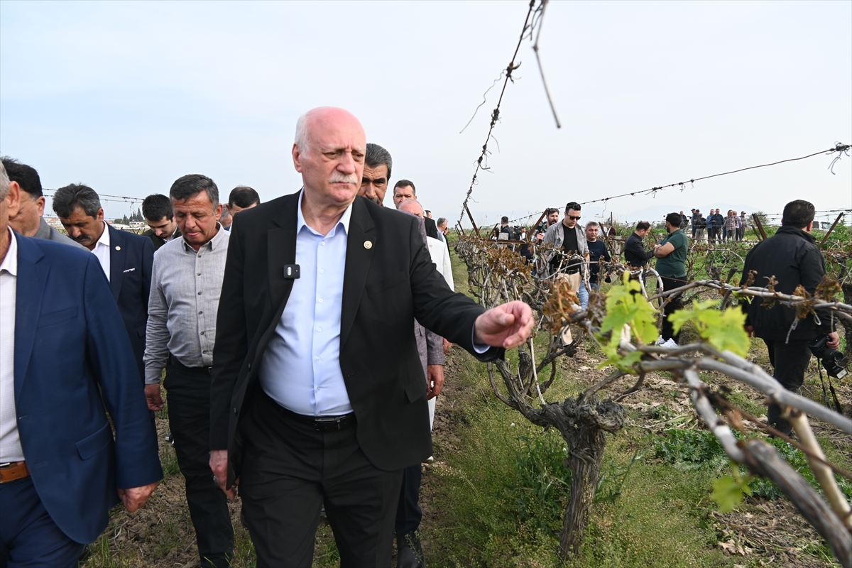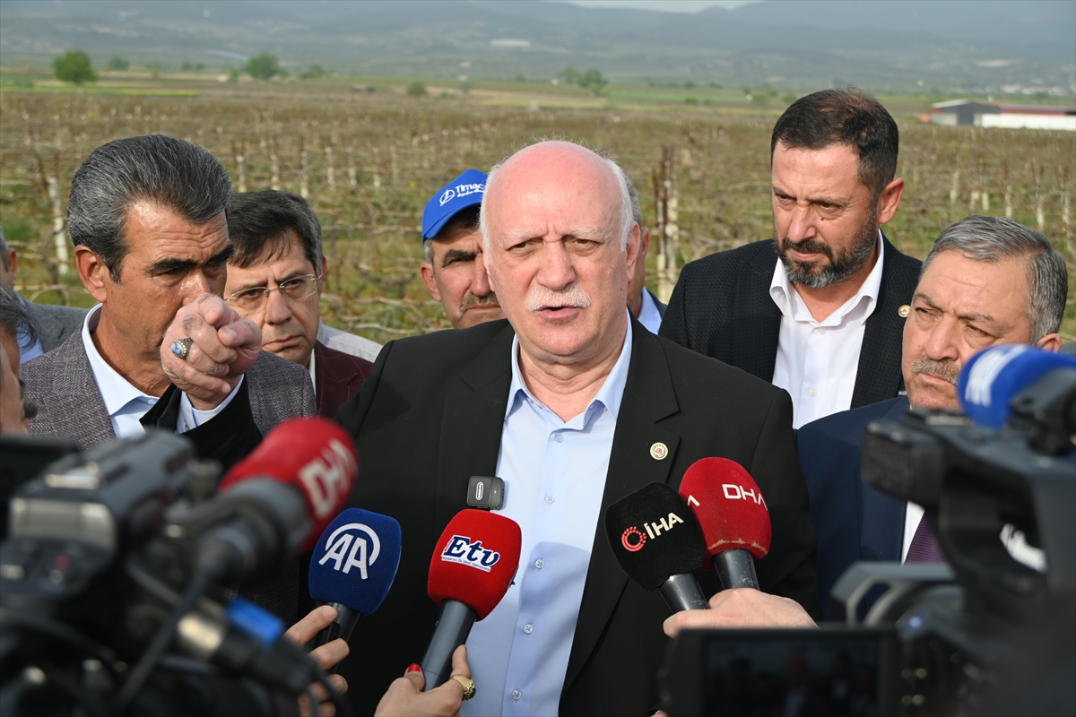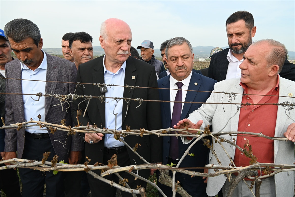 MANİSA (AA) – Türkiye Ziraat Odaları Birliği (TZOB) Genel Başkanı Şemsi Bayraktar, Manisa'nın Şehzadeler ve Saruhanlı ilçelerinde zirai dondan etkilenen üzüm bağlarında incelemelerde bulundu.