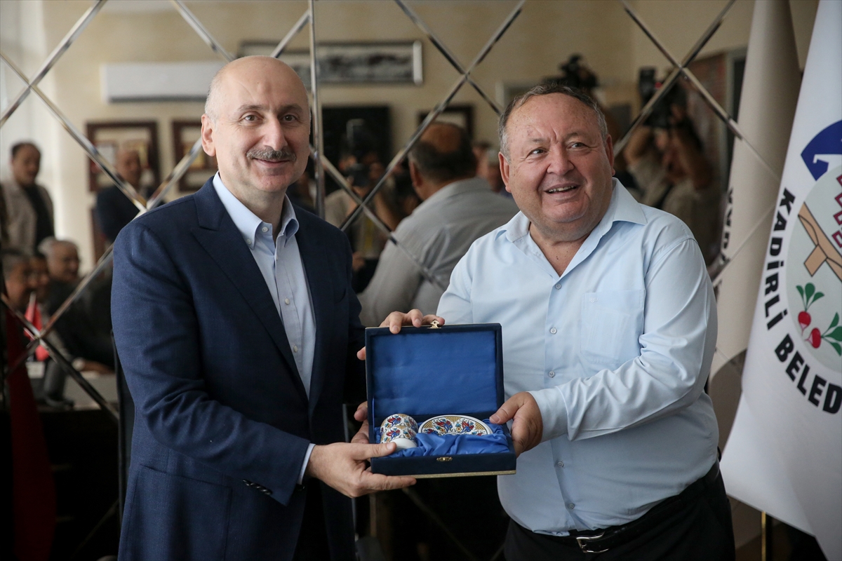 Karaismailoğlu, ziyaret ettiği Kadirli Belediyesi'nde, Vali Erdinç Yılmaz, Kaymakam Vehbi Bakır ve Belediye Başkanı Ömer Tarhan tarafından karşılandı.