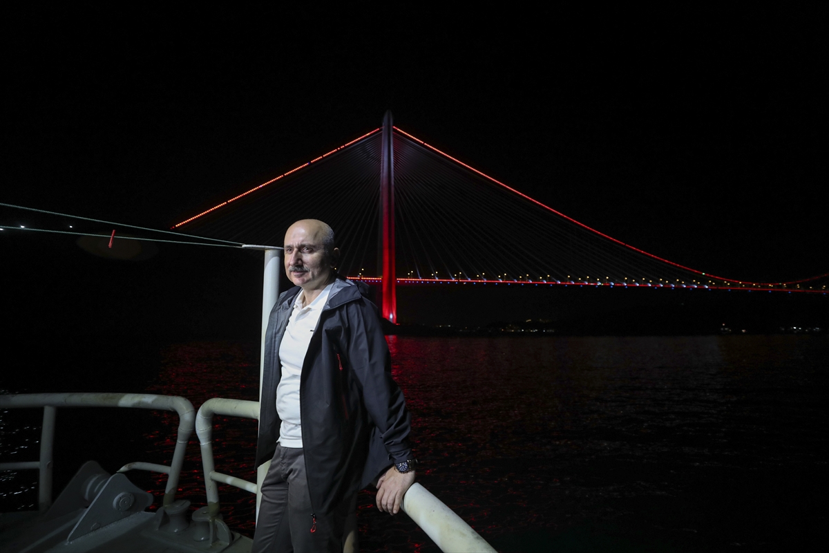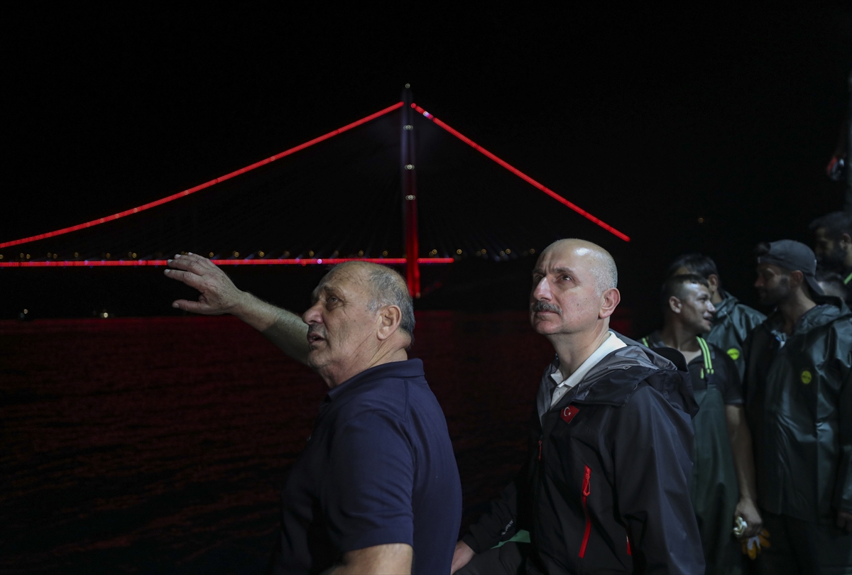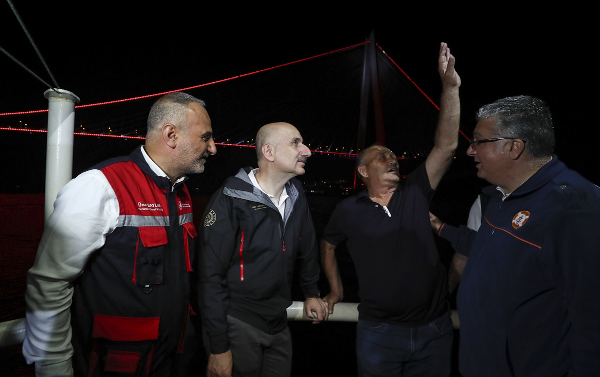 "Özellikle 40 bin civarındaki geminin geçiş yaptığı çok önemli güzergahlardan birisi. Bu önemli trafik yoğunluğunun olduğu bölgede balıkçılarımız da önemli bir işlevi yerine getiriyorlar. Tabii Kanal İstanbul'un planlaması aslında buradaki bu ihtiyaçlarından doğan bir planlama. O yüzden hem bu küresel lojistik, ticaret hacimlerinin artması hem Marmara Denizi'nde, Karadeniz'deki bekleme sürelerinin azaltılması, İstanbul Boğazı'nın yükünün hafiflemesi gerekiyor. Onun için de en kısa zamanda Kanal İstanbul'u da yaparak Boğaz'daki bu riskleri, tehlikeleri ortadan kaldıracak ve İstanbul Boğazı'nı İstanbulluların hizmetine sunacak önemli bir proje Kanal İstanbul projesi. Orada da çalışmalarımız etap etap başladı, devam ediyor. Tabii uzun soluklu, dünyanın en büyük altyapı projelerinden bir tanesi. Onu da süresi içerisinde bitirmek için de şu anda ulaşım yollarıyla birlikte hizmetimiz devam ediyor."