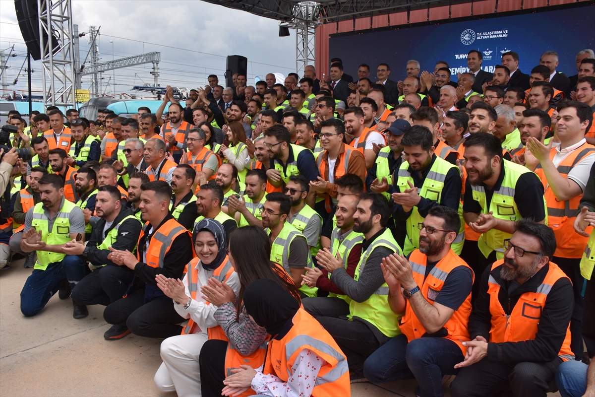 "Türkiye'de 2002'de yaklaşık 11 bin kilometre olan demir yolu ağı, bugün 2 bin 251 kilometresi yüksek hızlı tren hattı olmak üzere 13 bin 919 kilometreye ulaştı. Avrupa'nın 6'ncı, dünyanın 8'inci yüksek hızlı tren işletmecisi konumuna yükseldik. Şu anda Halkalı-Kapıkule, Ankara-İzmir, Bandırma-Bursa-Yenişehir-Osmaneli, Mersin-Adana-Osmaniye-Gaziantep ve Yerköy-Kayseri hızlı tren hatları gibi çok önemli demir yolu projelerinin yapımlarına da devam ediyoruz. Demir yolu ağımızı 2028'e kadar 17 bin 500 kilometreye yükseltmeyi hedefliyoruz. Elbette nihai hedefimiz, 28 bin 500 kilometre. Hedefimiz, sadece demir yolu ağımızı genişletmek değil, bu ağda kullanılacak her bir aracı, her bir bileşeni, yerli ve milli imkanlarla üretmek, teknolojiyi kendi ellerimizle şekillendirmek, geliştirmek. TÜRASAŞ, bu vizyonun en somut temsilcisi olarak, Orta Doğu'nun en büyük raylı sistem araç üreticisi haline geldi."