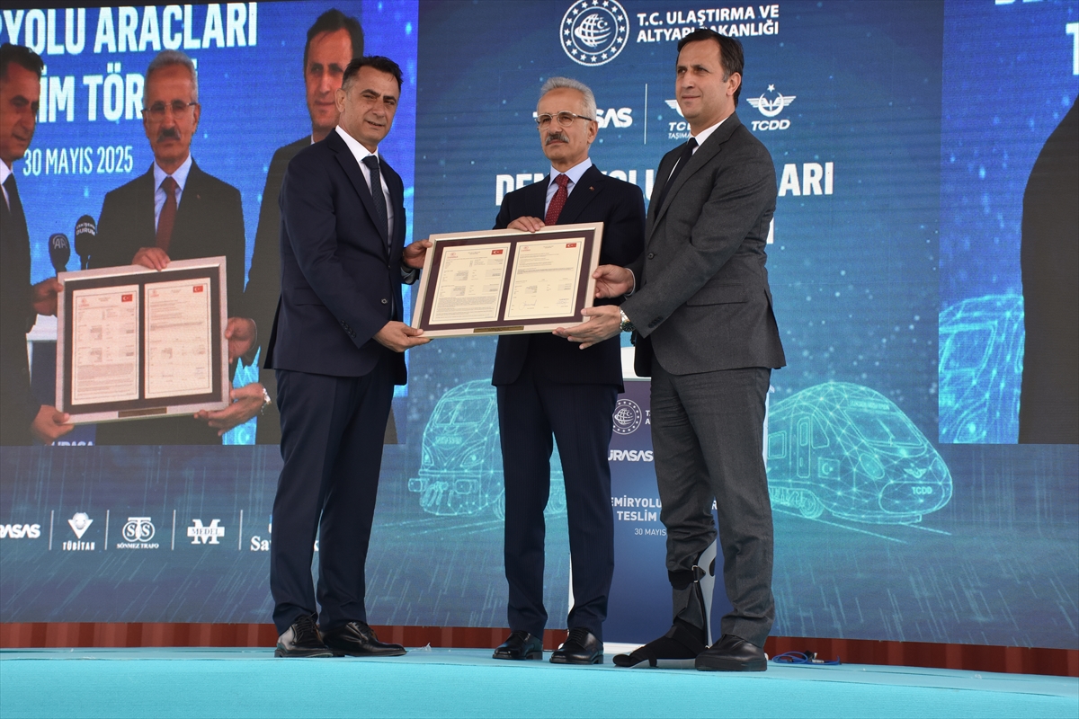 Uraloğlu, Hasanbey Lojistik Merkezi'ndeki TÜRASAŞ Araç Teslim Töreni'nde, demir yolu sanayi ve tren işletmeciliğinin öncü kuruluşları TÜRASAŞ ve TCDD Taşımacılık arasında gerçekleşen, elektrikli lokomotif ve tren setlerinden yük ve yangın söndürme vagonlarına uzanan yeni nesil araçların teslim töreninde olmaktan duyduğu memnuniyeti dile getirdi.