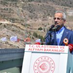 "Bundan 22 yıl önce Türkiye'nin toplam tünel uzunluğu 50 kilometre iken biz sadece burada 56,7 kilometre uzunluğunda 39 tünel inşa ettik. Yani 80 yılda yapılan 50 kilometrelik tünel uzunluğundan fazlasını tek bir projede tamamladık. 69,2 kilometre uzunluğundaki Yusufeli relokasyon yollarını, Merkez Viyadüğü dışında 22 Kasım 2022'de Yusufeli Barajı ile hizmete açmıştık. Bu projemiz ile Artvin'i Erzurum'a, Kafkasları ve Karadeniz sahil kesimini Doğu ve Güneydoğu Anadolu'ya bağlayan kuzey-güney aksının standardını önemli ölçüde yükselttik. Yüksek dağların ve derin vadilerin bulunduğu bölgede, doğaya meydan okuyan yüksek teknoloji ürünü viyadüklerle ulaşım standardını artırarak daha güvenli ve konforlu seyahat imkanı sunduk."