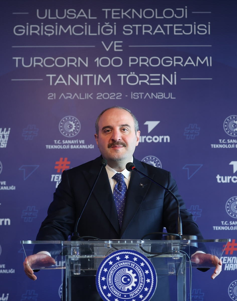İSTANBUL (AA) – Sanayi ve Teknoloji Bakanı Mustafa Varank, Ulusal Teknoloji Girişimciliği Stratejisi ile nitelikli insan kaynağının gelişmesine olanak sağlayan, girişimciliği teşvik eden ve finansman imkanlarının artırıldığı örnek bir girişimcilik ekosistemi oluşturmayı amaçladıklarını belirterek, Turcorn 100 Programı'nı ise Türkiye'den yeni milyar dolar değerlemeye ulaşan şirketler çıkarmak için tasarladıklarını söyledi.