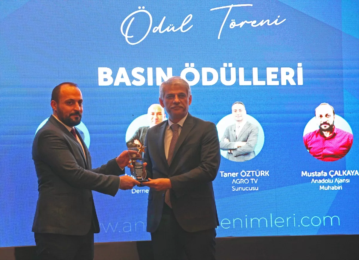 Basın ödülüne layık görülen Anadolu Ajansı muhabiri Mustafa Çalkaya, ödülünü Kültür ve Turizm Bakan Yardımcısı Alpaslan'dan aldı.