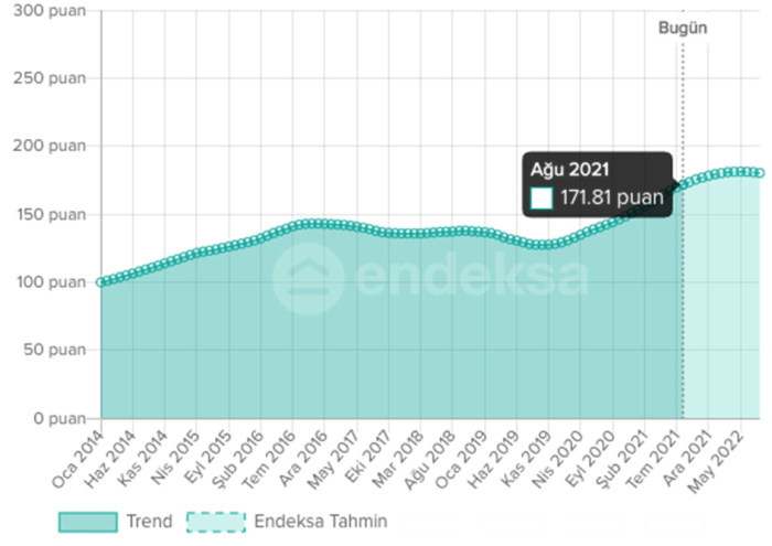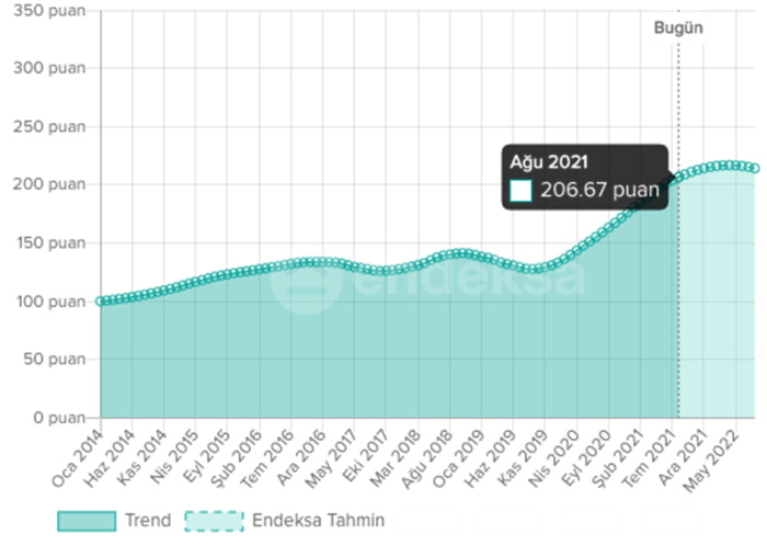 Endeksa’dan alınan veriler, Aralık 2019’dan itibaren kira endeksinin kesintisiz bir şekilde yükseldiğini gösteriyor.