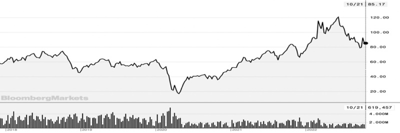 -The conflict between Russia and Ukraine only added to global supply concerns sending the per barrel price of oil to $123 on March 8, 2022 , making the increase seven-fold from only two years prior. After retreating due to recession fears, more recently, as OPEC+ production cut spooked the markets, oil saw a 16% in price hitting $92.64 before dropping by 9% to $85 on October 21st as recession and lower demand fears starting dominating the sentiment.