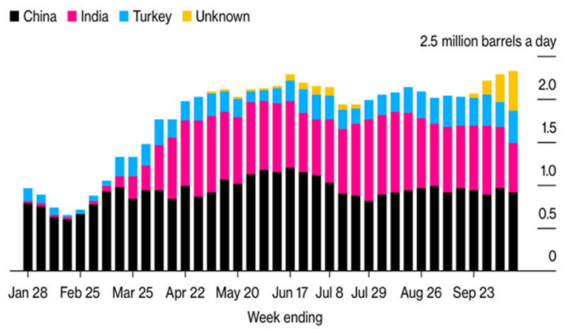 Sources: Bloomberg calculation using vessel tracking data monitored by Bloomberg