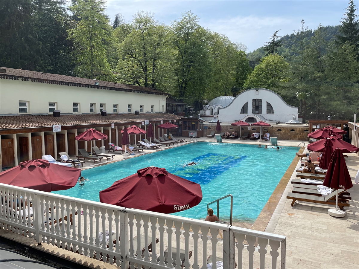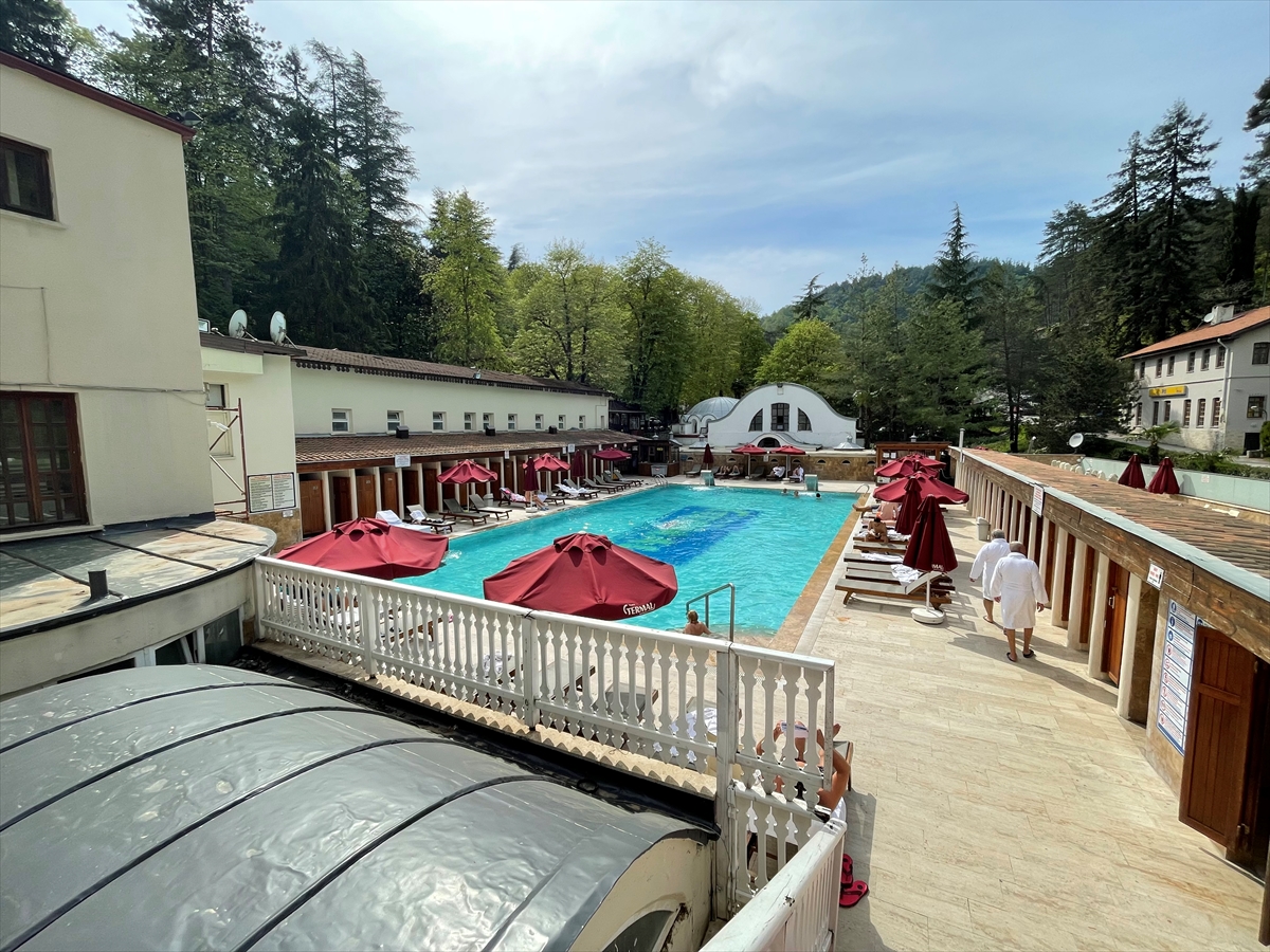 "Ramazan ayındaki durgunluk dışında bir haftalık öğrencilerin ara tatili vardı. O ara tatildeki yoğunluk bizi biraz rahatlattı. Şimdi de bayrama hazırlanıyoruz. Burası tarihi termal tesis. Açık havuzumuzda kaplıca suyumuz var. Kaplıca suyumuz normal kaynaktan 60 derece çıkıyor. Soğutma yapılarak 34-36 derece aralığında havuza bırakılıyor. Dışarıda bol oksijenli hava, burada kaplıca suyu varken başka bir şeye ihtiyaç duymuyor misafirlerimiz. Bunun dışında Atatürk'ün kurdurduğu ilk arboretum, doğal tabiat müzesi ve ormanlık alan içindeki tesisimiz var. O yüzden havuz ve hamam dışında doğa ile iç içe düzenli sabah ve akşam yürüyüşleri yapabiliyorlar."