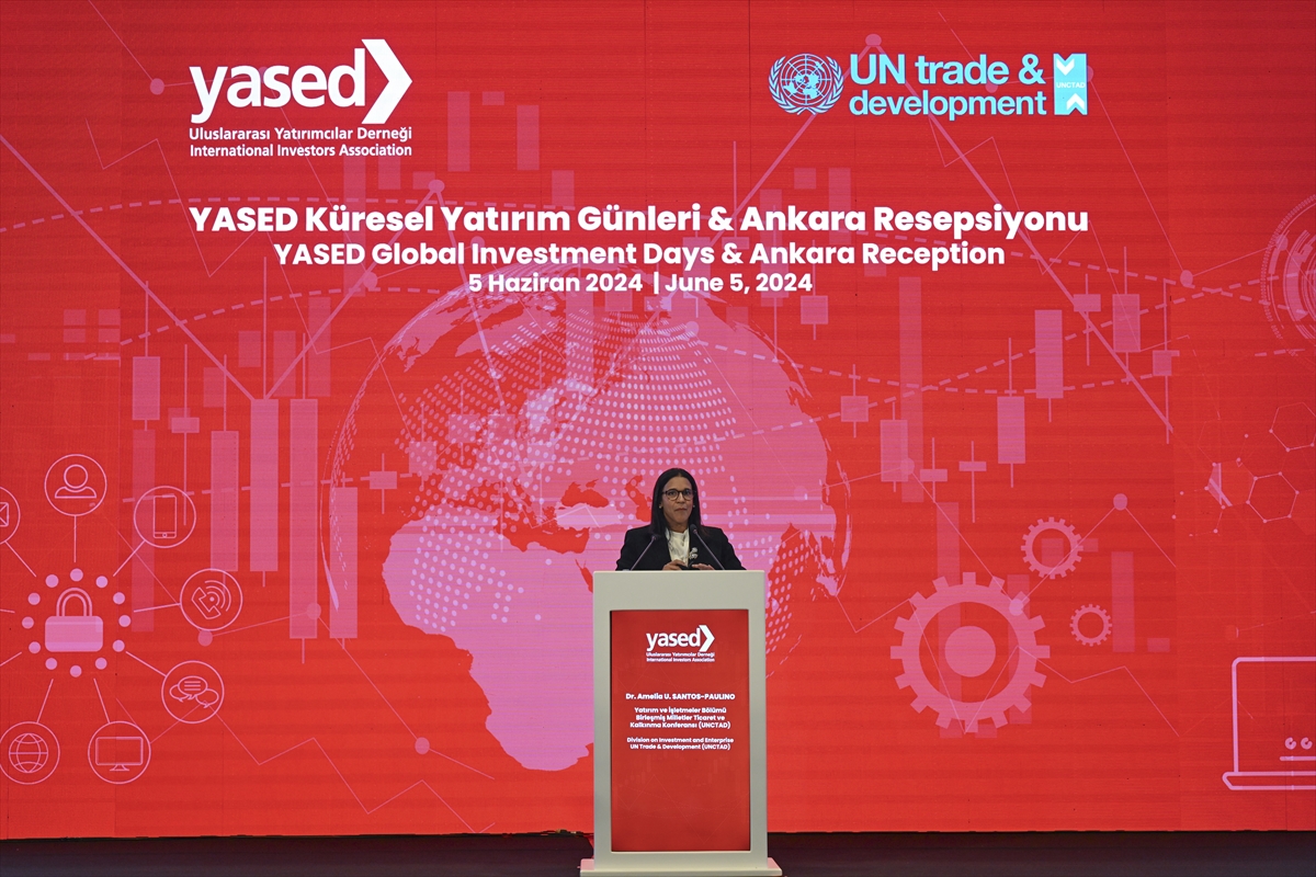 ANKARA (AA) – Uluslararası Yatırımcılar Derneği (YASED) tarafından düzenlenen "Küresel Yatırım Günleri"nde, Birleşmiş Milletler Ticaret ve Kalkınma Konferansının (UNCTAD) "Yatırımları Kolaylaştırma ve Dijital Devlet" temalı "2024 Dünya Yatırım Raporu"nun Türkiye tanıtımı yapıldı.