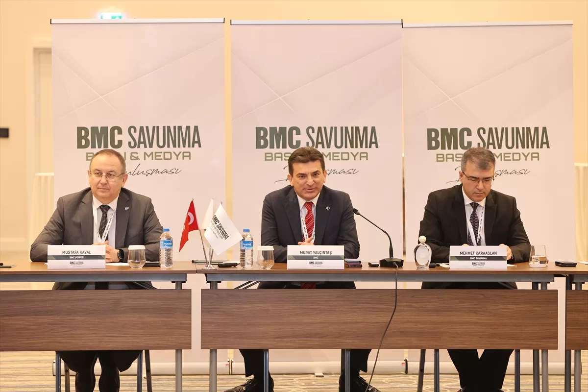 BMC İcra Kurulu Üyesi ve Üst Yöneticisi Murat Yalçıntaş, BMC Savunma Genel Müdürü Mehmet Karaaslan ve BMC Power Genel Müdürü Mustafa Kaval, basın toplantısında, Altay Tankı Projesi başta olmak üzere yürüttükleri projelere ilişkin bilgi verdi.