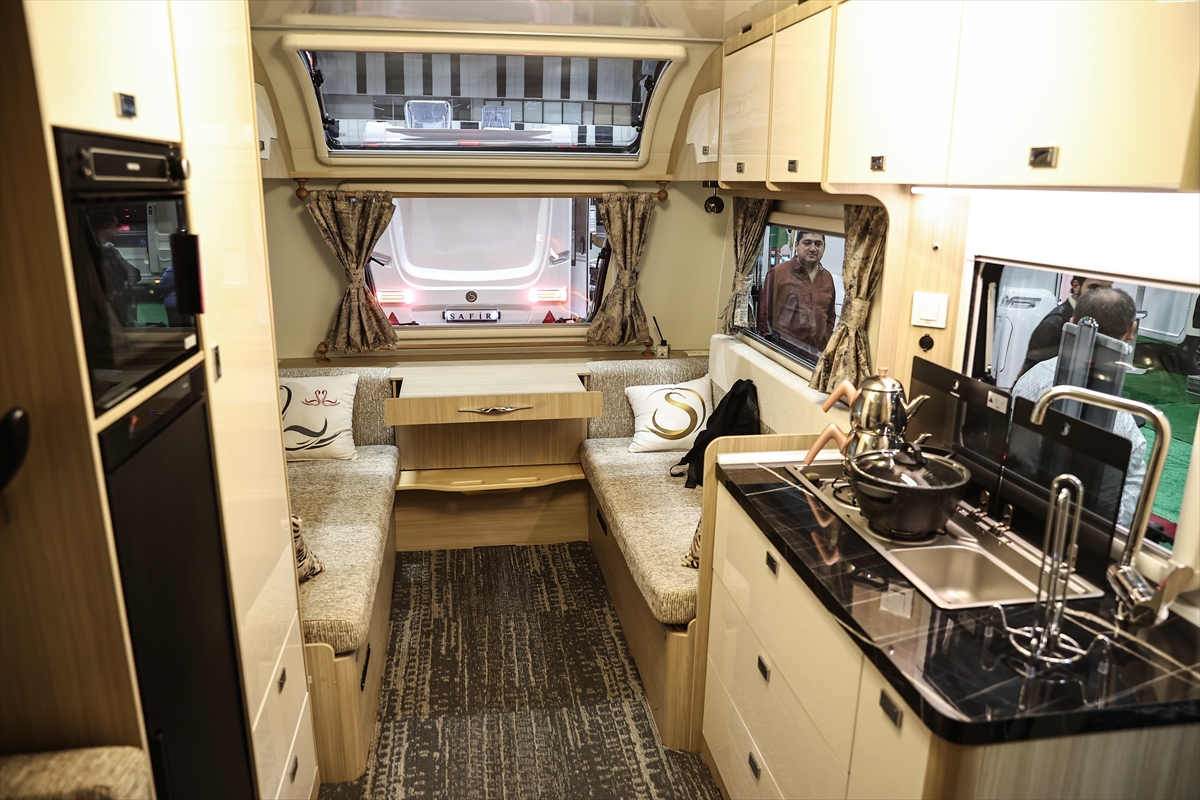 En güncel karavan ve tekerlekli mobil ev modellerinin görücüye çıktığı fuarda, içerisinde mutfak, banyo, tuvalet, salon ve yatak odası gibi birçok alanı bulunduran araçlar meraklılarını bekliyor.