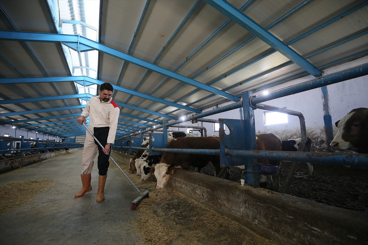 Dedesinin 1930'dan bu yana tarımla uğraştığını, kendisinin de 19 yaşından bu yana sektörde faaliyet gösterdiğini dile getiren Karadağ, "Babam 1980'de dedemden devraldı, 2018'de de ben işleri devam ettirmeye başladım. Şu an 460 baş kapasiteli, destek alarak kurduğumuz bir çiftliğimiz var. Aynı zamanda 3 bin kök kayısı ağacımız var. Hayvanlarımızı kendi arazilerimizde yetiştirdiğimiz ürünlerimizle besliyoruz." dedi.