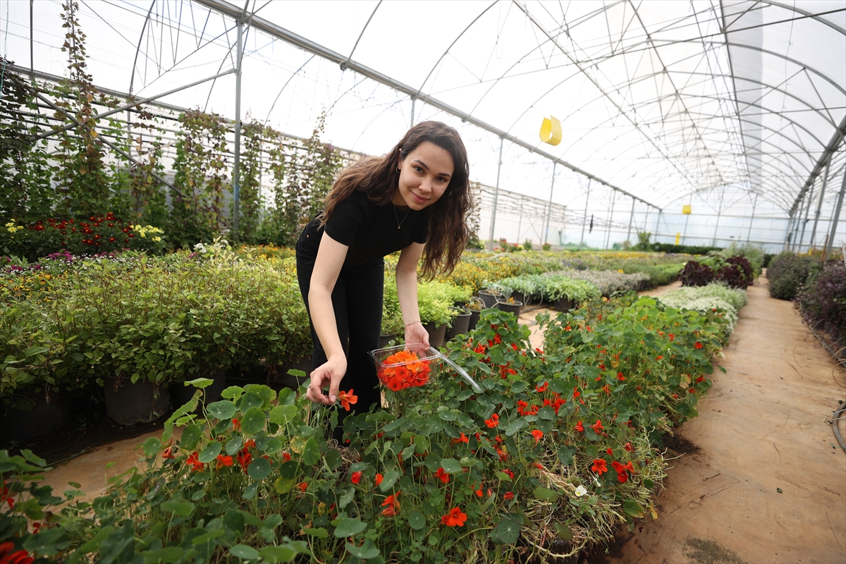 ANTALYA (AA) – MUSTAFA ÇALKAYA – GÜLSEM ADAM – Sera ortamında yaş sebze üretimi yapan Tarım Orman Gençlik Konseyi Üyesi Elif Erüst, rengi ve şekli bozulmadan raf ömrünü 30 güne çıkardığı yenilebilir menekşeleri piyasaya sunuyor.