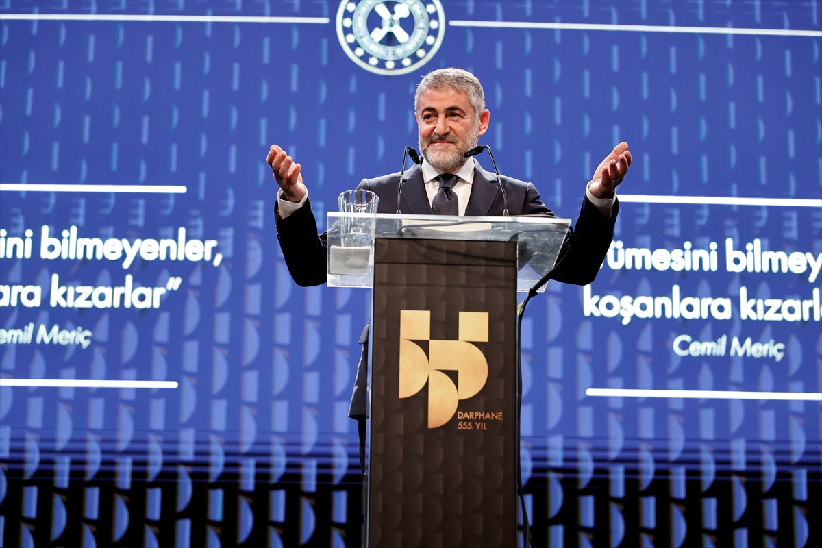 Darphane ve Damga Matbaası Genel Müdürlüğü'nün 555. yılı dolayısıyla Atatürk Kültür Merkezi'nde (AKM) Hazine ve Maliye Bakanı Nureddin Nebati'nin katılımıyla etkinlik düzenlendi.