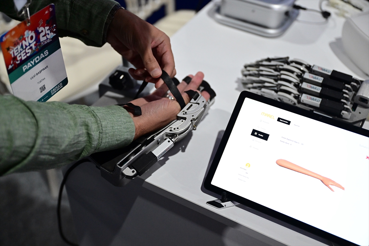 İSTANBUL (AA) – KAAN ULU – Marmara Üniversitesi Teknoloji Fakültesi öğretim üyesi iki akademisyenin ürettiği Miyoelektrik Kontrollü Robotik El Rehabilitasyon Sistemi, TEKNOFEST İstanbul'da katılımcılara tanıtılıyor.
