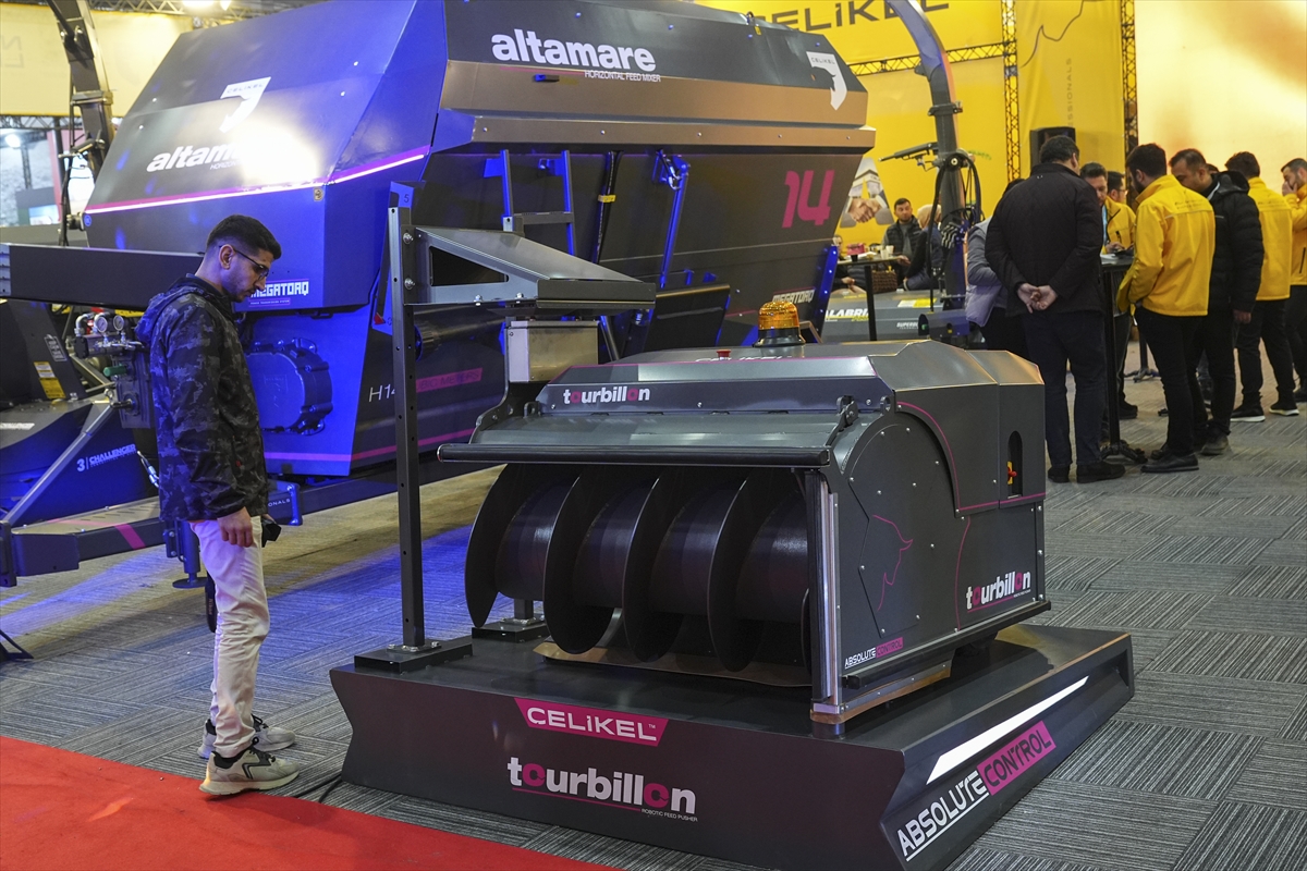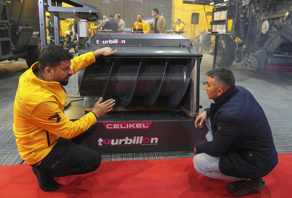 Konya'da tarım makineleri üretimi yapan bir firma, çiftliklerde iş gücü ve yem israfını azaltıp, süt ve et verimini artırması amacıyla geliştirdiği "Tourbillon" adlı yem itme robotunu ilk kez tanıttı.