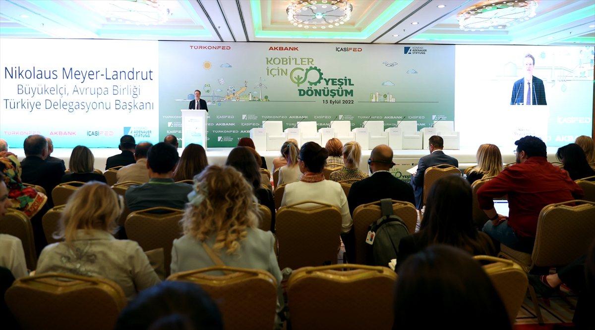 KAS Türkiye Temsilcisi Walter Glos da yeşil dönüşümün, Türk şirketleri için yük olmadığının, Avrupa piyasasında rekabet güçlerini artırabilecek büyük bir fırsat olduğunun altını çizdi.