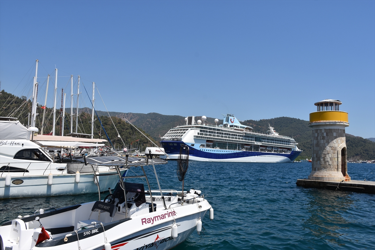 Yunanistan'ın Santorini Adası'ndan kalkan ve Marmaris Cruise Port Limanı'nın büyük iskelesine yanaştırılan Malta bayraklı gemide, çoğu İngiliz 1850 yolcu ve 735 personel bulunduğu belirtildi.
