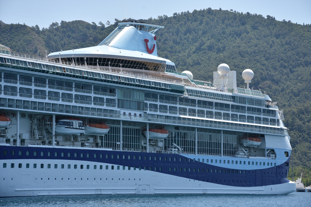 Rodos Limanı'nın ardından rotasını Güney Ege'ye çeviren 265 metrelik yolcu gemisi, Marmaris Limanı'nın büyük iskelesine yanaştırıldı.
