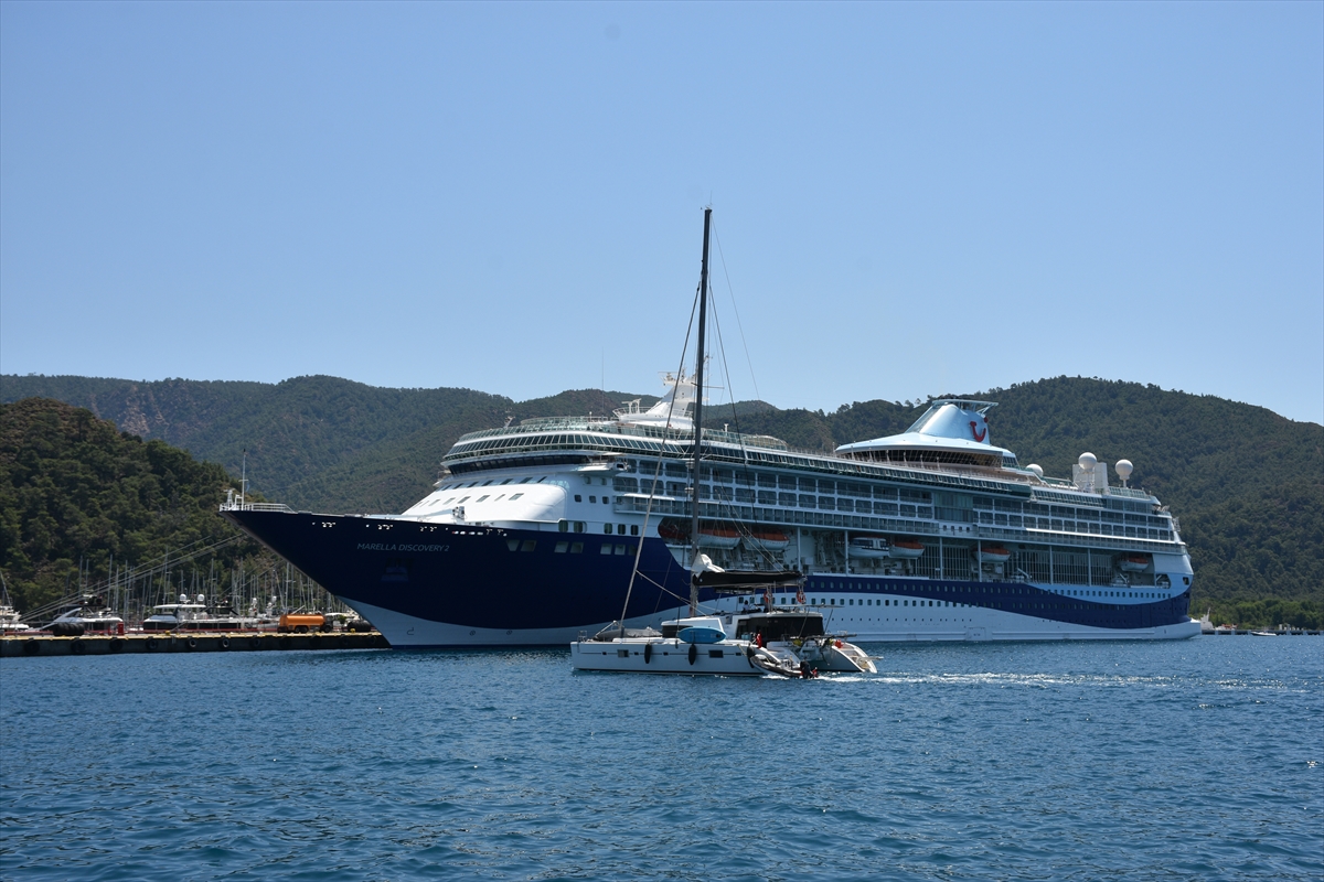 MUĞLA (AA) – Bahamalar bayraklı kruvaziyer " Marella Discovery 2", 1797 yolcusuyla Muğla'nın Marmaris ilçesine geldi.