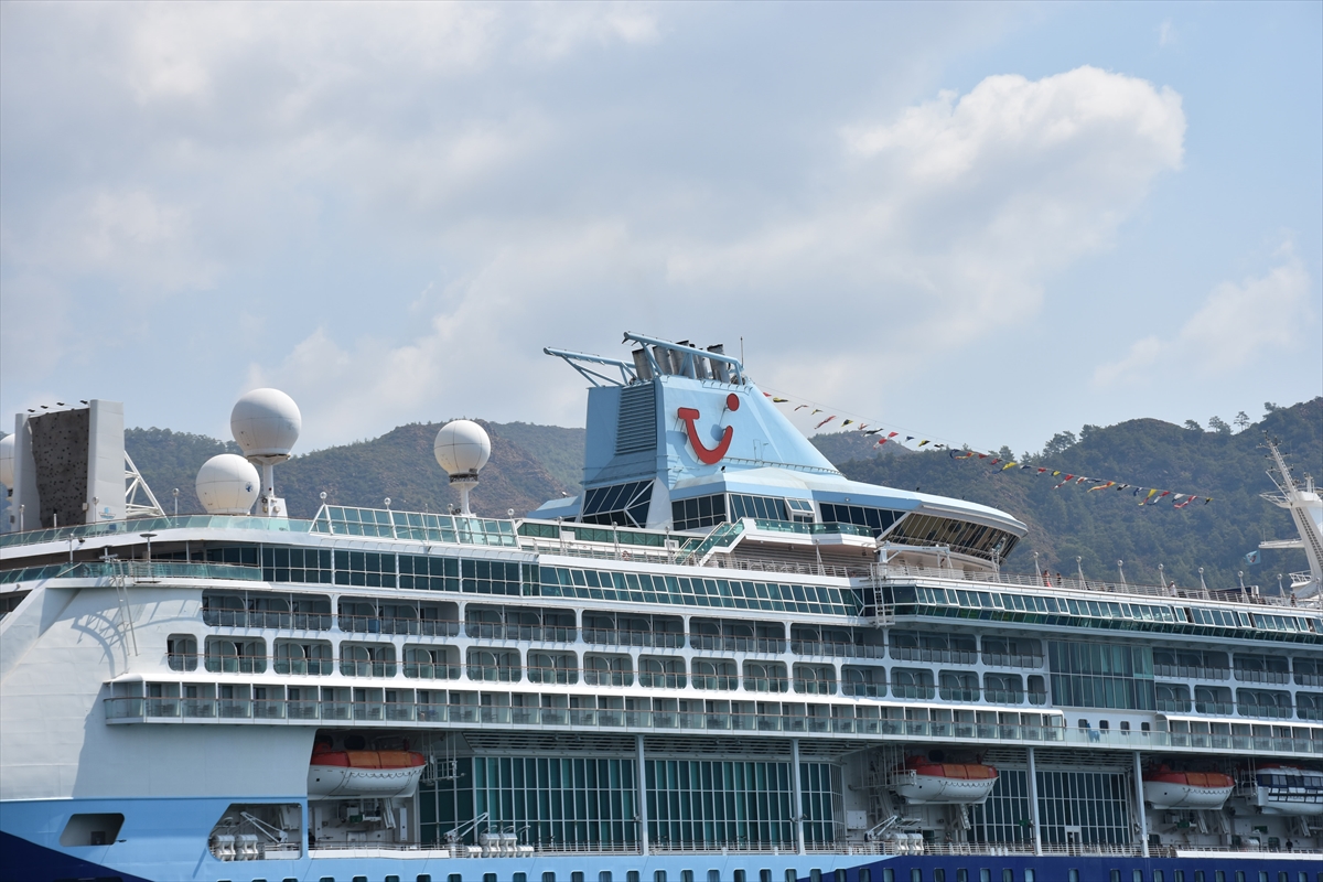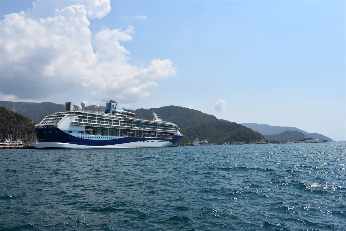 Mikanos Adası'ndan gelen ve Marmaris Cruise Port Limanı'nın büyük iskelesine yanaştırılan gemide, çoğu İngiliz 1890 yolcu ve 740 personel bulunduğu belirtildi.