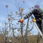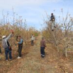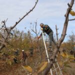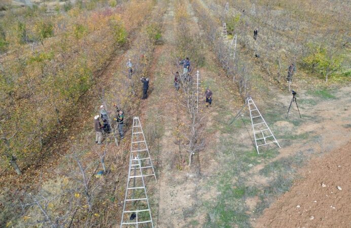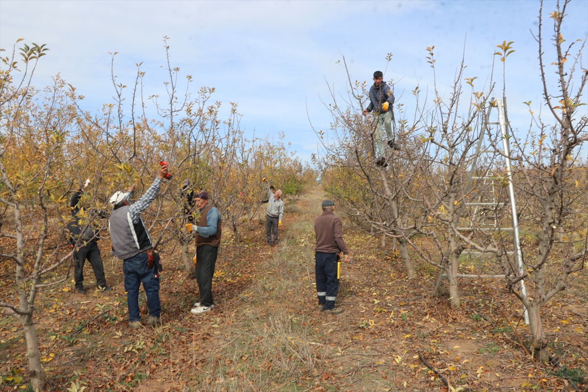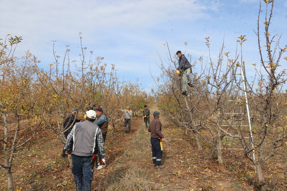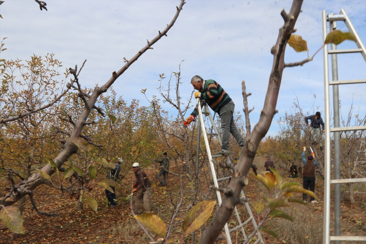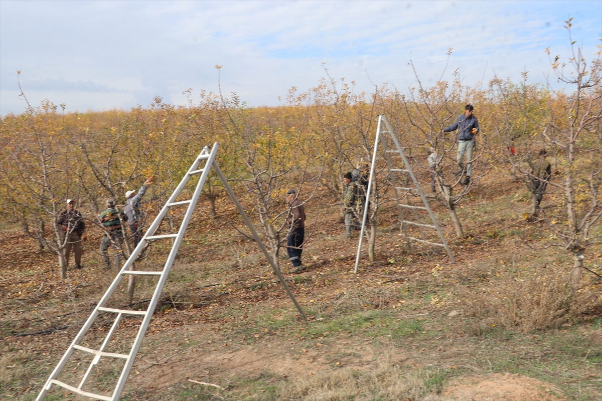 Yeni sezona güçlü girmesi amacıyla bahçede yaklaşık 50 işçiyle kuruyan ve verimi düşüren dalları budanan ağaçların, diplerinde toprak havalandırma işlemleri de yapılıyor.